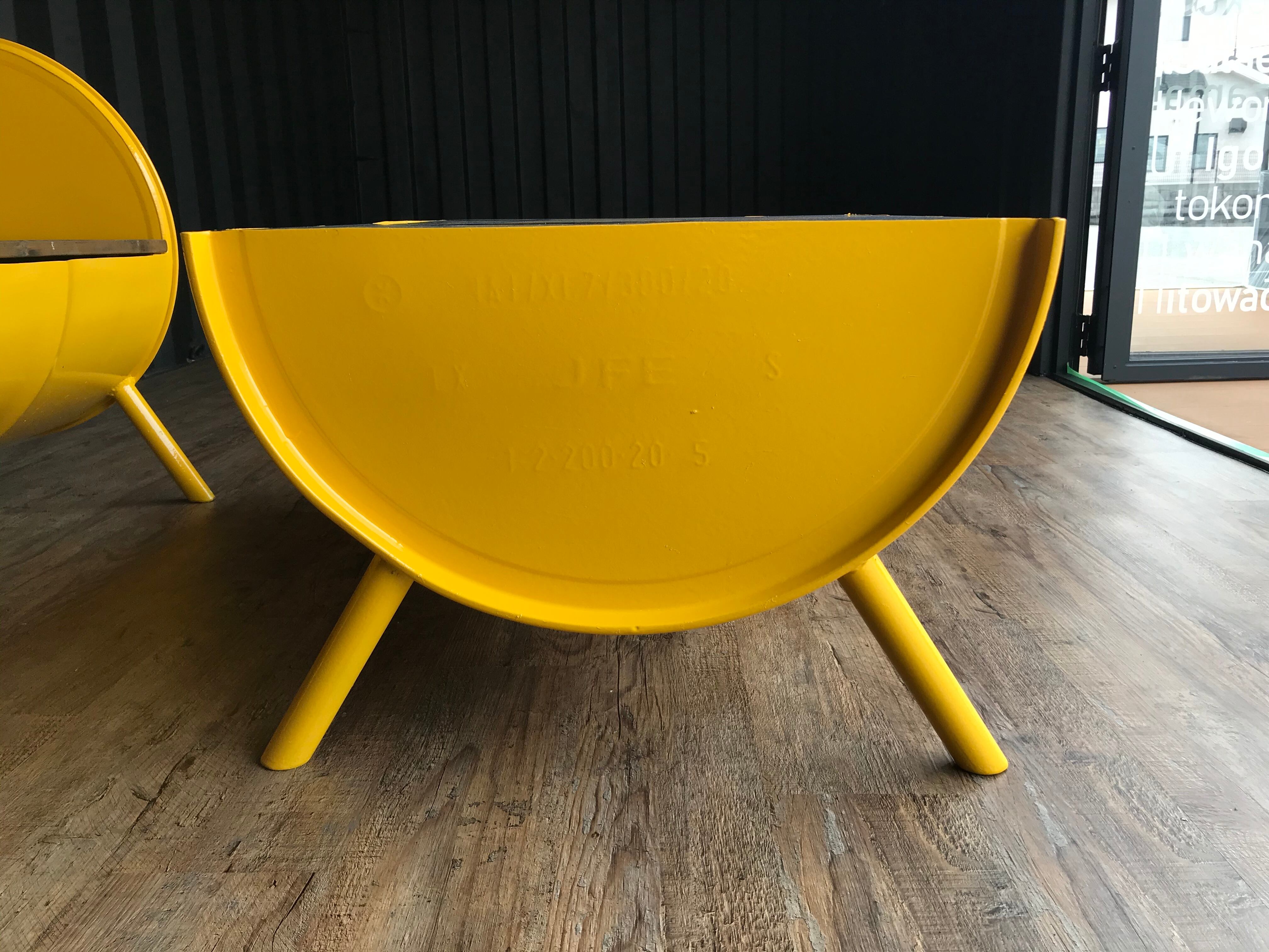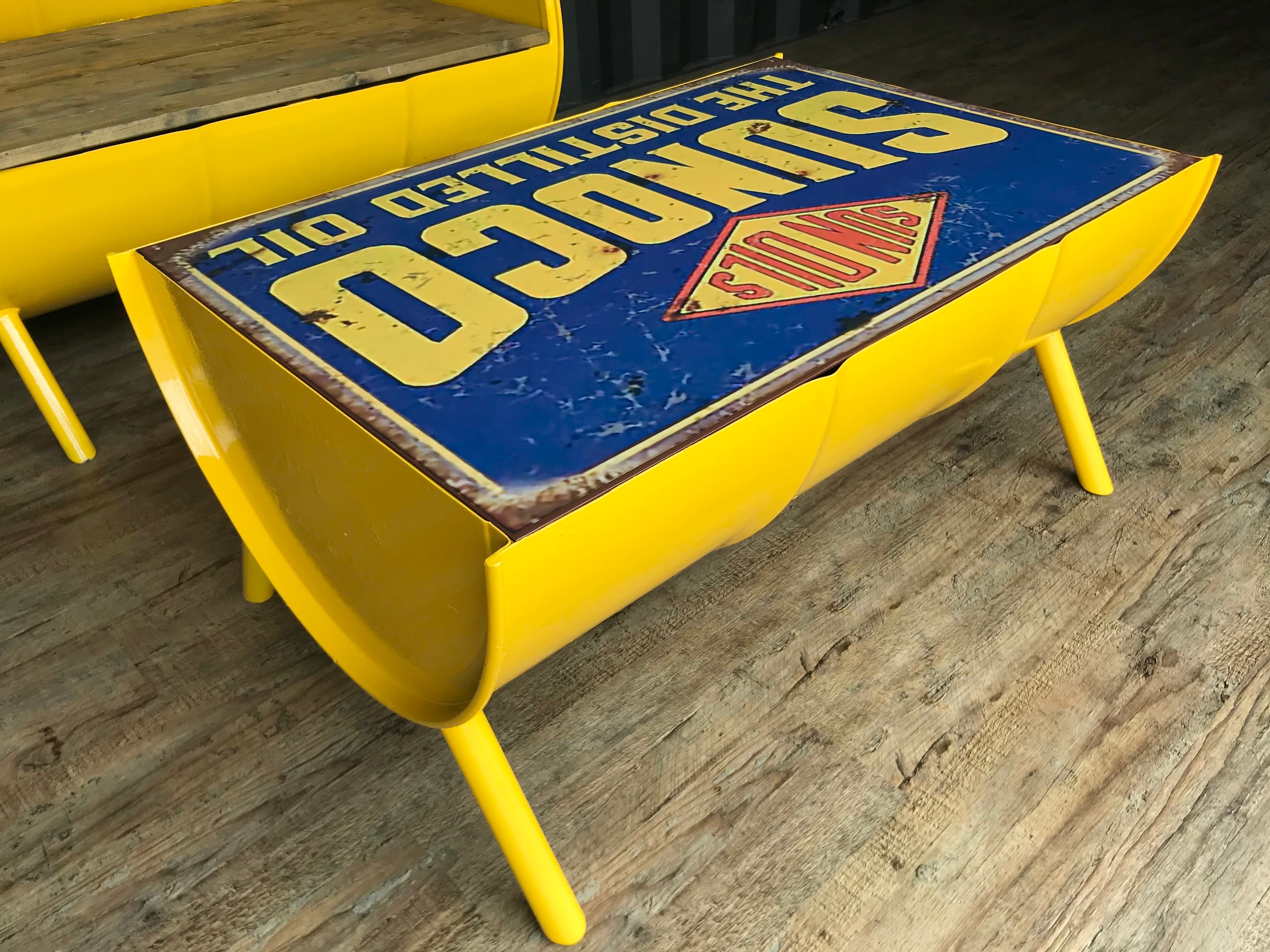 ドラム缶を大胆にカット、溶接しワイルドでアメリカンなテーブルに仕上げています。(ウレタン塗装仕上)
